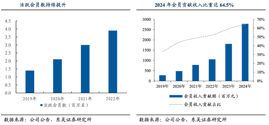 經(jīng)典案例:根據(jù)公司公告、東吳證券研究所等綜合資訊表明,達美樂會員體系加強優(yōu)質客群綁定,有效提升用戶粘性及復購率:2024 年會員收入貢獻達 27.83 億元,同比增長 54%,收入占比達 64.5%。