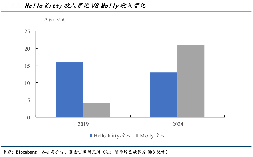 經典案例:根據Bloomberg、各公司公告、國金證券研究所等綜合資訊表明,泡泡瑪特以會員體系和潮玩的社交屬性強化用戶黏性,相較 Hello Kitty 更精準切入成人潮玩消費市場,更能夠突破客單價消費的天花板。