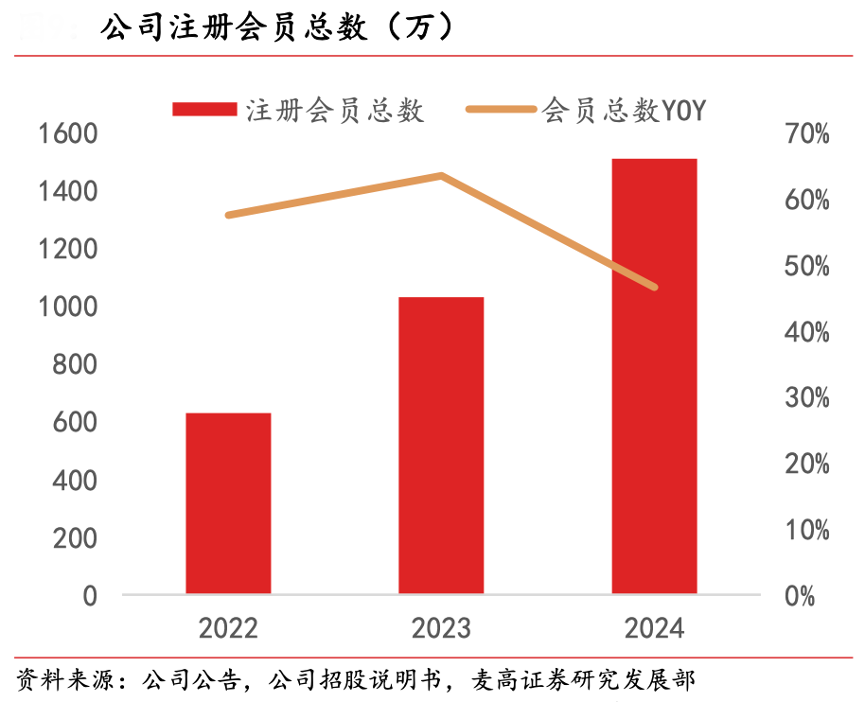 經(jīng)典案例:根據(jù)公司公告、公司招股說明書、麥高證券研究發(fā)展部等綜合資訊表明,2024年毛戈平公司注冊會員總數(shù)達(dá) 1510 萬人,較 2023 年同比凈增 480 萬人,增幅達(dá) 46.6%。